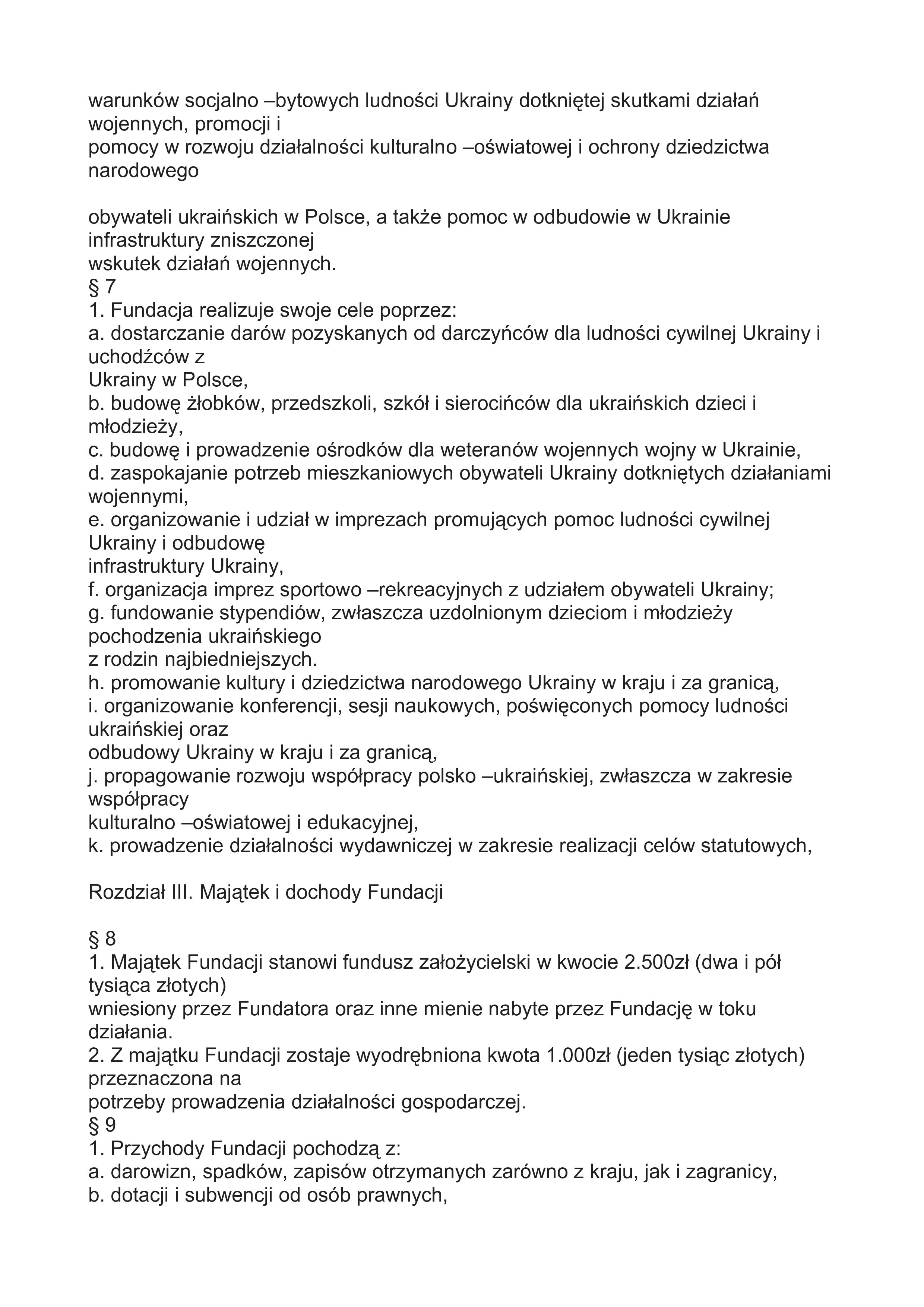 Teren działania Fundacji, siedziba, jednostki organizacyjne Fundacji